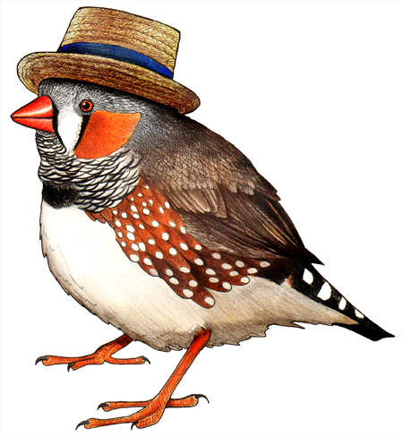 Zebra Finch in a Summer Straw Boater Hat
